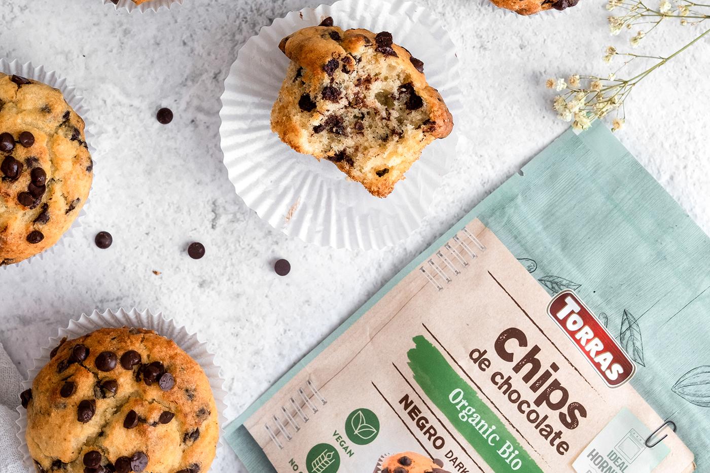 Zmes razporedite v pekač za mafine, obložen z lističi za peko in ga napolnite do vrha! Po želji posujte s čokoladnimi kapljicami in pecite v ogreti pečici 17-18 minut oz. dokler vstavljen zobotrebec na sebi nima surovega testa.