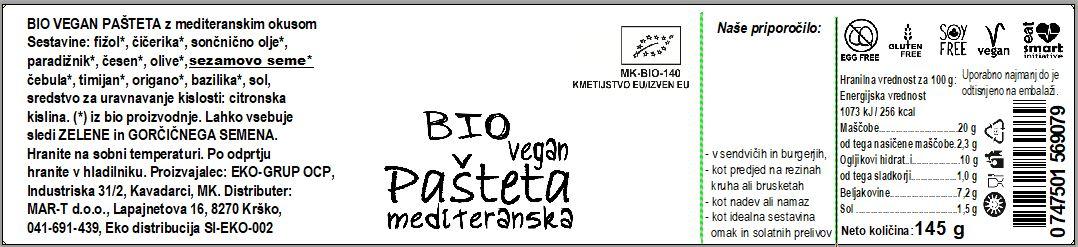 Bio veganska mediteranska pašteta Greenfood se uporabi kot dodatek jedem: